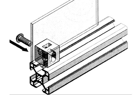 將此連接塊尾端直接插入型材槽坑內(nèi),轉(zhuǎn)動(dòng)90度后即緊密固定在型材上,然后就可在型材上安裝有機(jī)玻璃等各種面板,再用螺栓鎖緊,安裝簡(jiǎn)潔,拆卸方便。