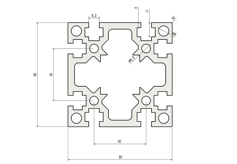 JL-8-8080GA,8mm 槽寬工業(yè)鋁型材系列
